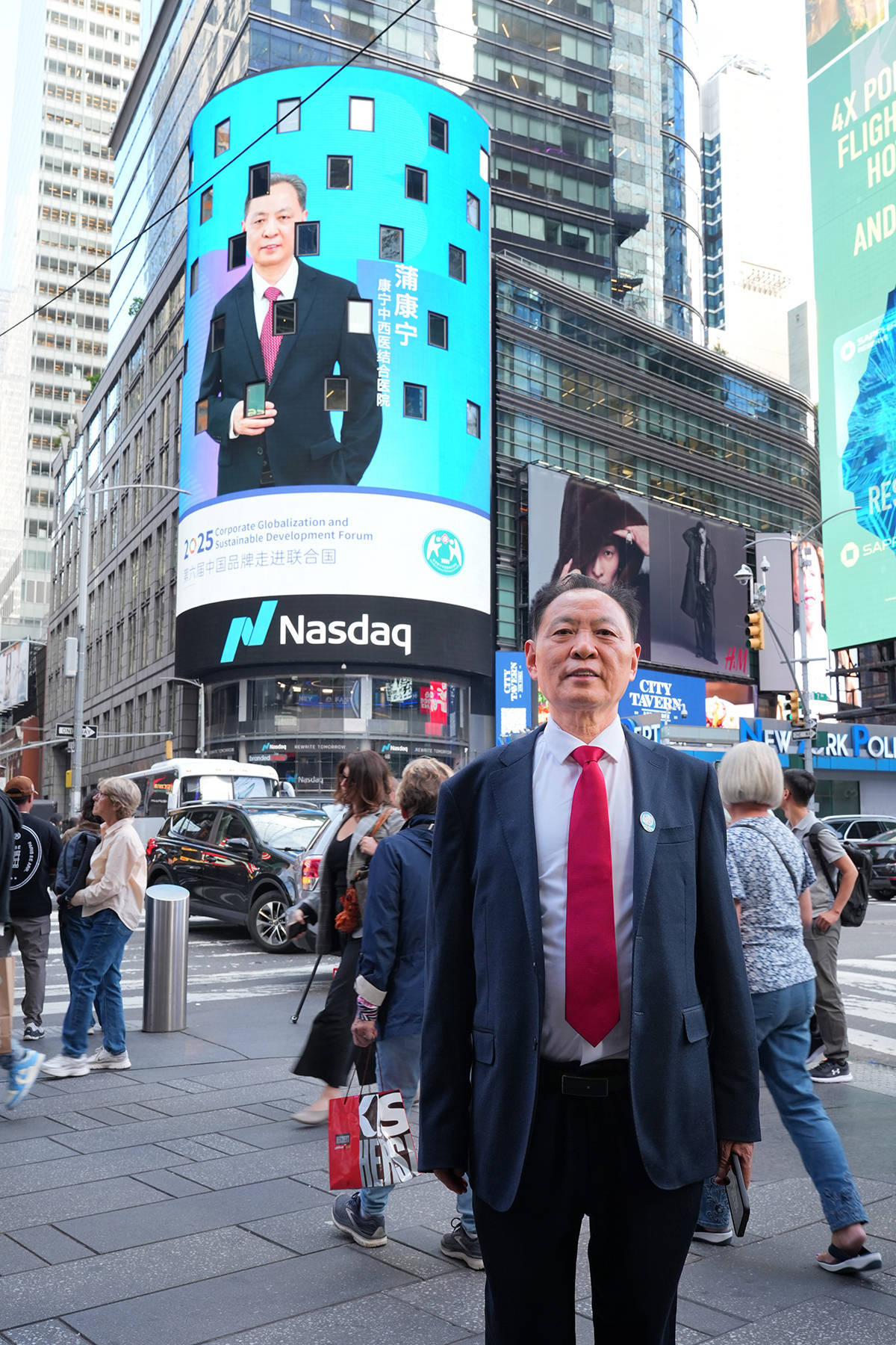 论坛当日,蒲康宁同其他中国企业代表一同来到纽约时代广场,此刻,其个人形象登上纳斯达克大屏,向全球进行形象展播,此次亮相,不仅展现了中国企业家走向世界的自信与从容,更向全球资本市场发出了渠县康宁中西医结合医院品牌的强音。